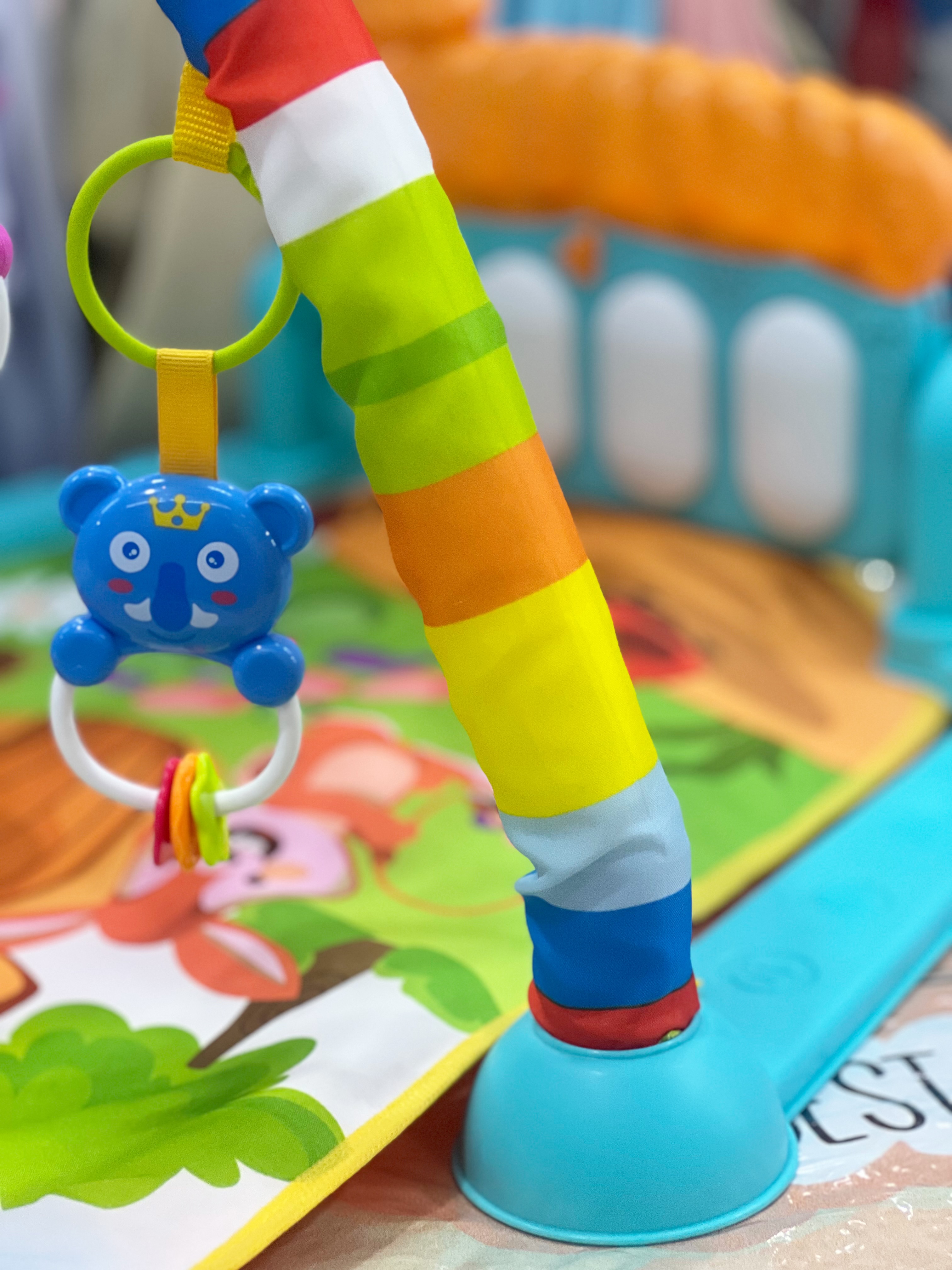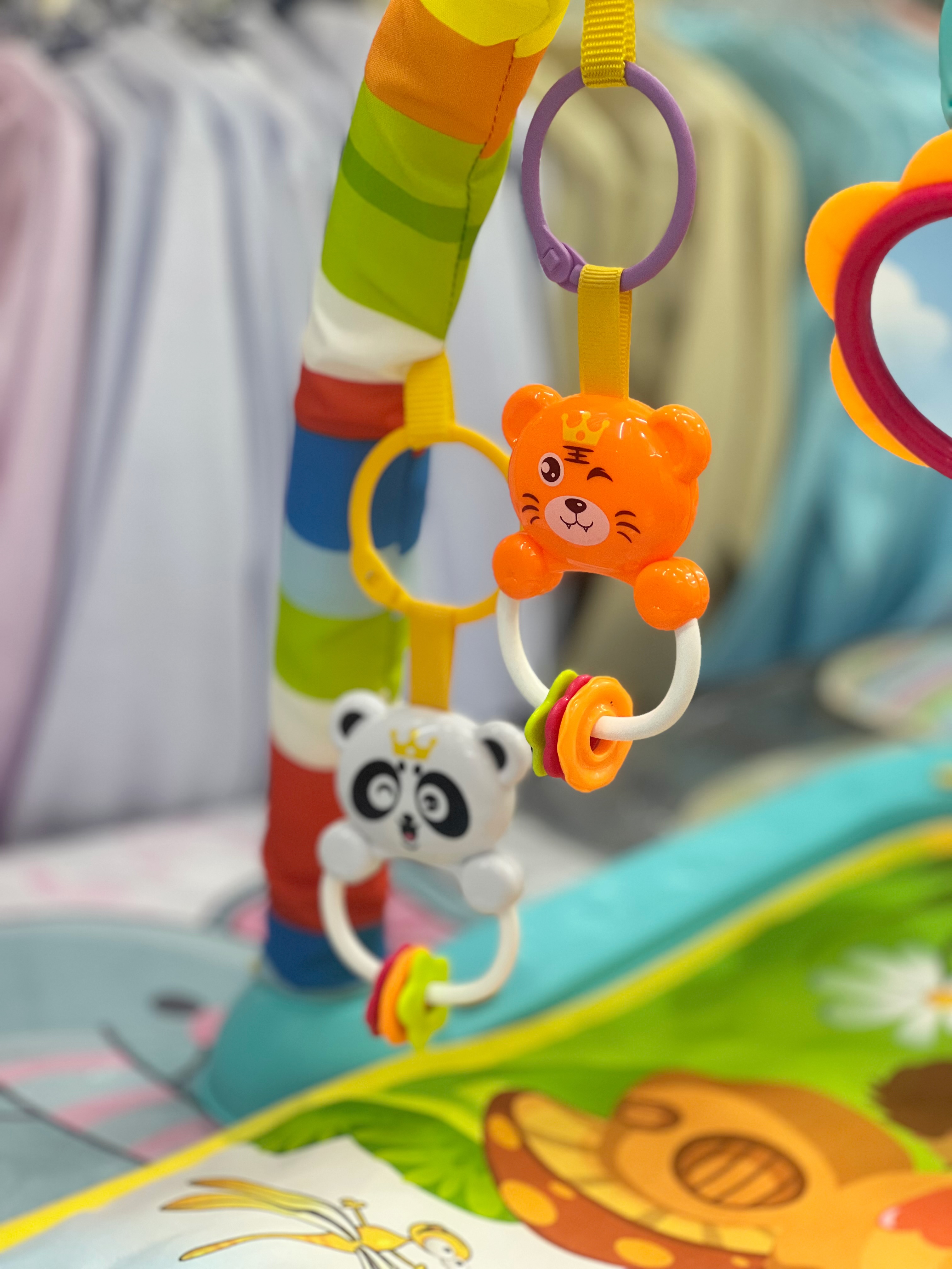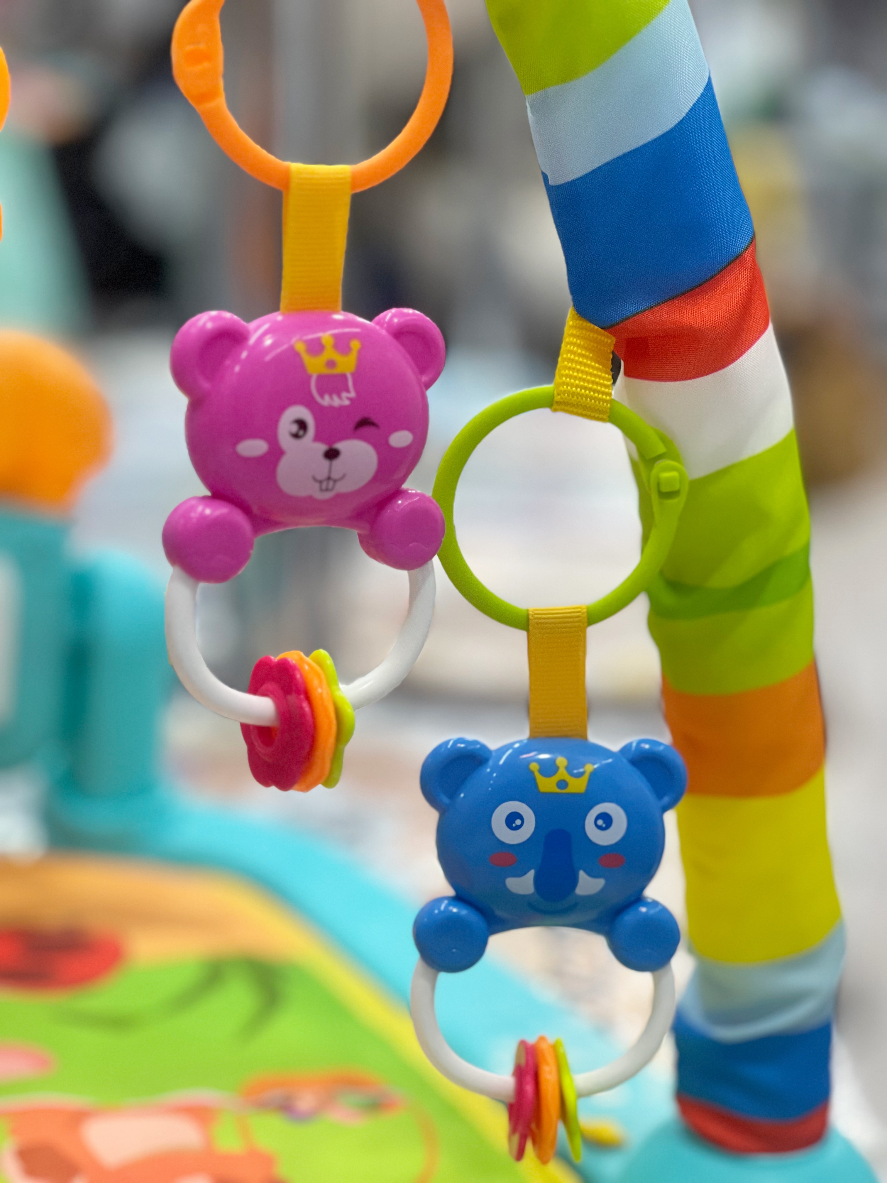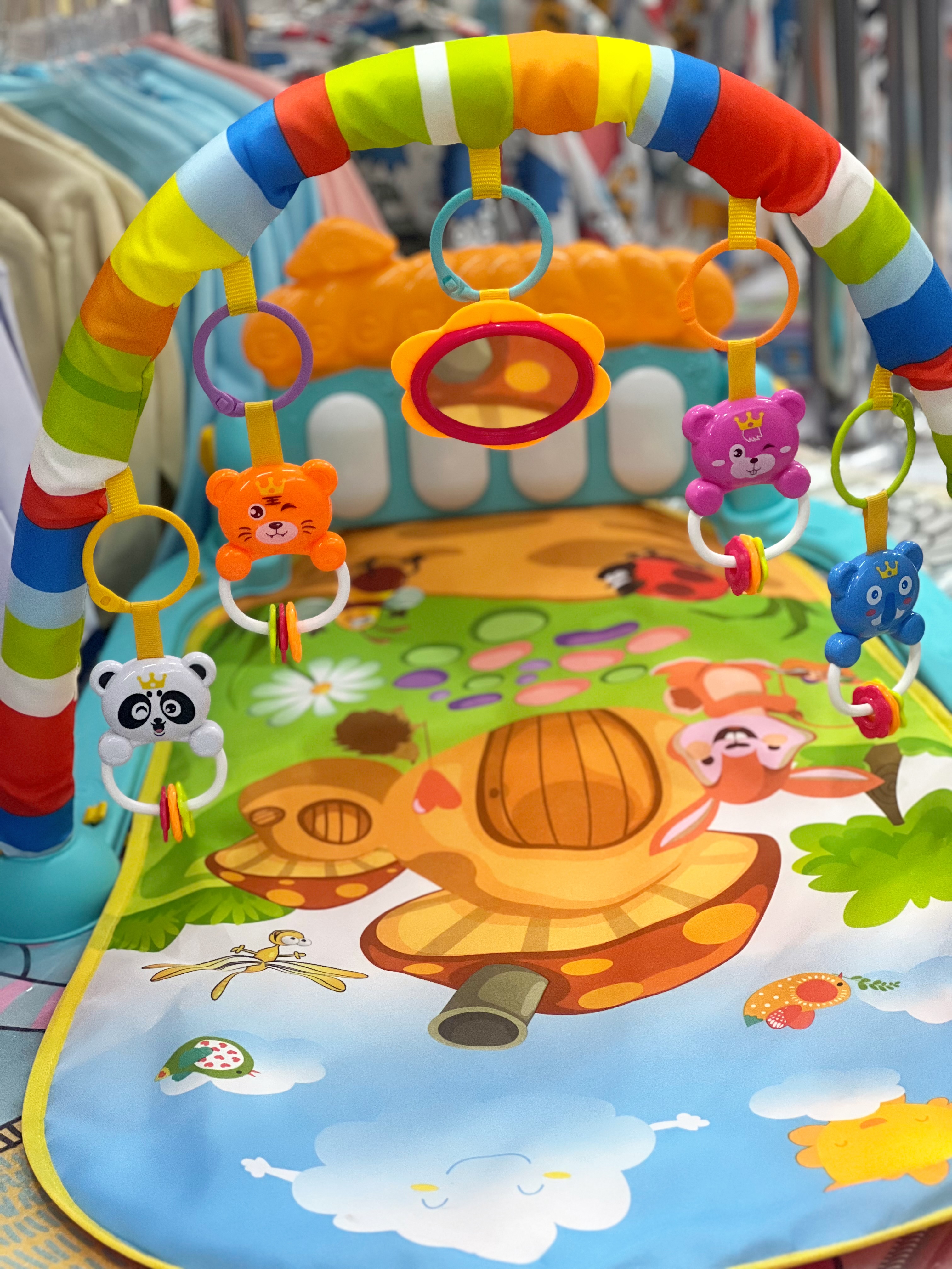 تشک بازی دارای ۴ عدد جغجغه باکیفیت آویز به همراه آیینه کودک میباشد
